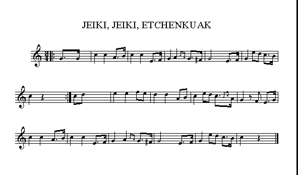 Jeiki, jeiki etchenkuak, argia da zabala;Itchasoti mintzatzen da zilharrezko trompeta;