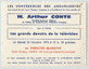 Carta de Manuel de Irujo a Arturo Conte, Presidente de la Radiodifusión de la Televisión Francesa, en la que le felicita por su conferencia sobre el tema: "Les grands devoirs de la télévision". Se adjuntan invitaciones para asistir a dicha conferencia y un breve resumen de la misma.