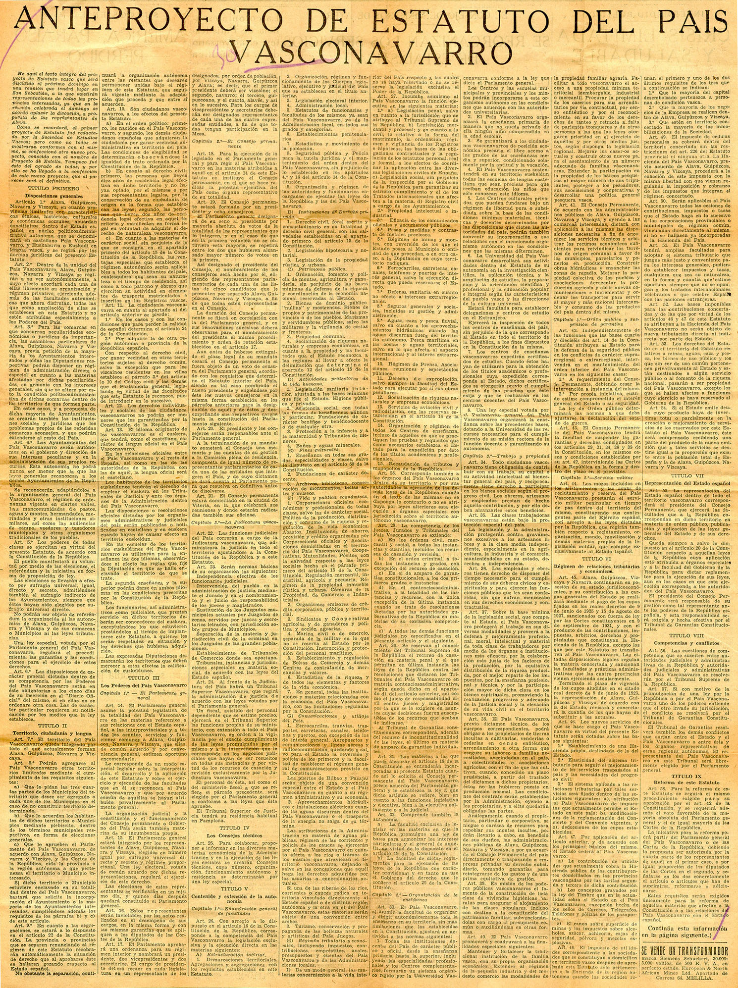 - Proyecto de Estatuto del país vasco-navarro.