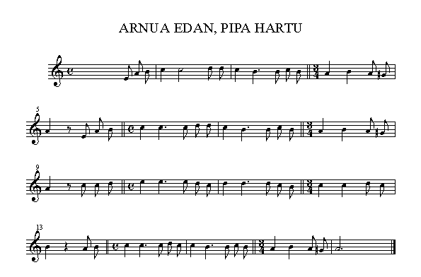 Arnua edan, pipa hartu,Gero buruia zoratu;