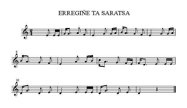 1. Erregiñe ta saratsa,Ayeri eder garbosa. (andere)(bis)
