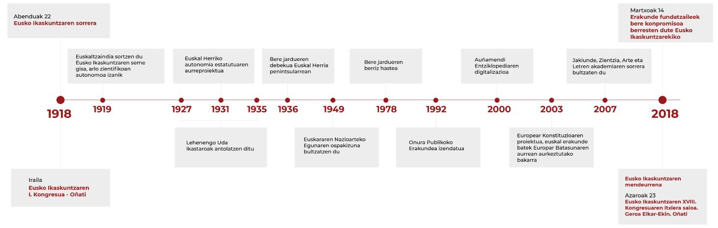 Eusko Ikaskuntza was founded by the regional Councils of Alava, Biscay, Giupuzcoa and Navarre in 1918 and marked the beginning of Basque cultural modernity.