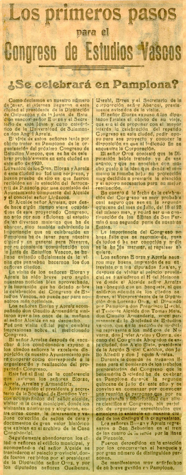 - Sobre la visita a Iruñea de Apraiz y Elorza para tratar de la organización del Congreso.