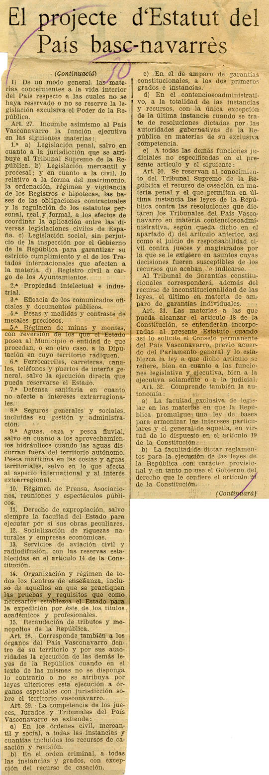 - El projecte d´Estatut del Pais basc-navarrès.