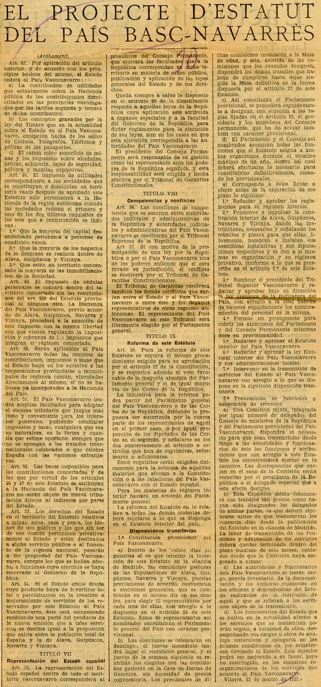 - El projecte d´Estatut del Pais basc-navarrès.
