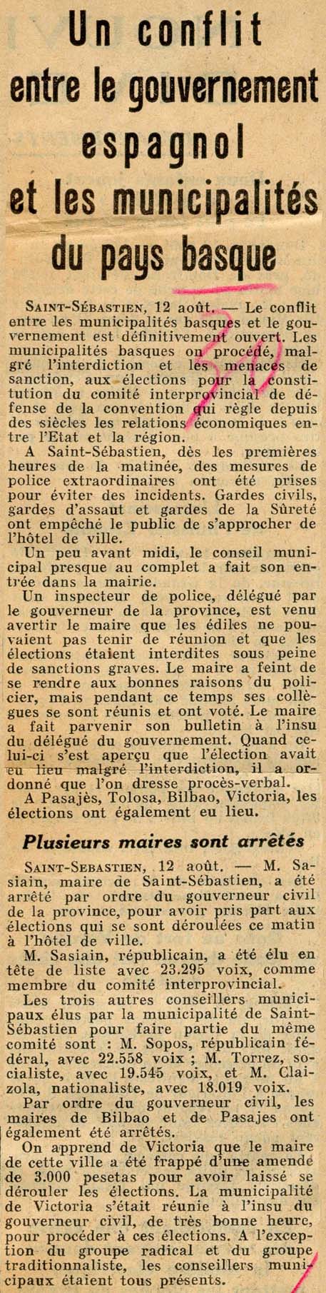 - Un conflit entre le gouvernement espagnol et les municipalités du pays basque.