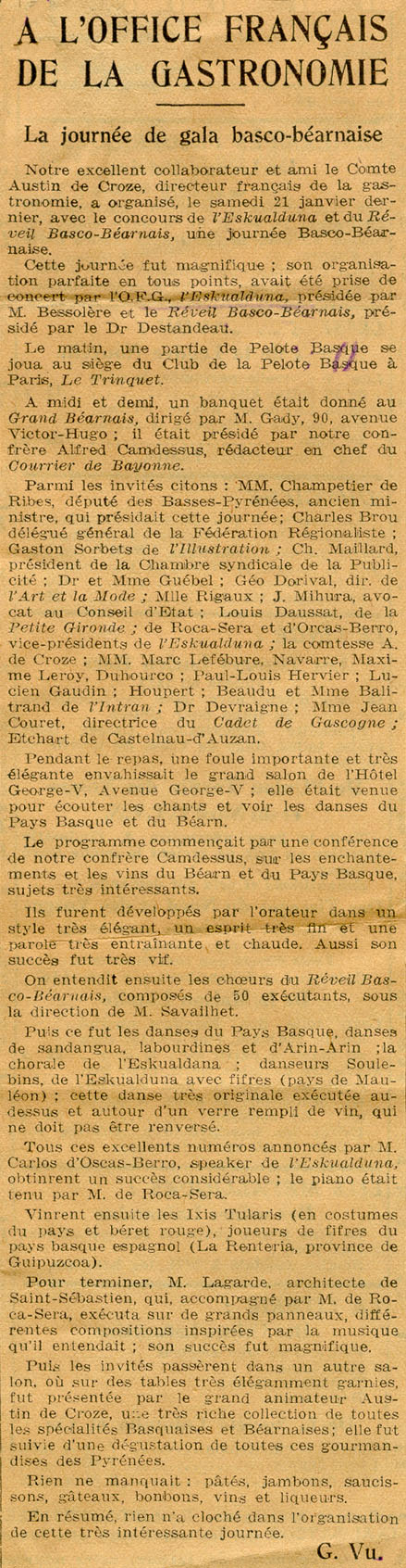 - A L´Office Français de la Gastronomie. La journée de gala basco-béarnaise.
