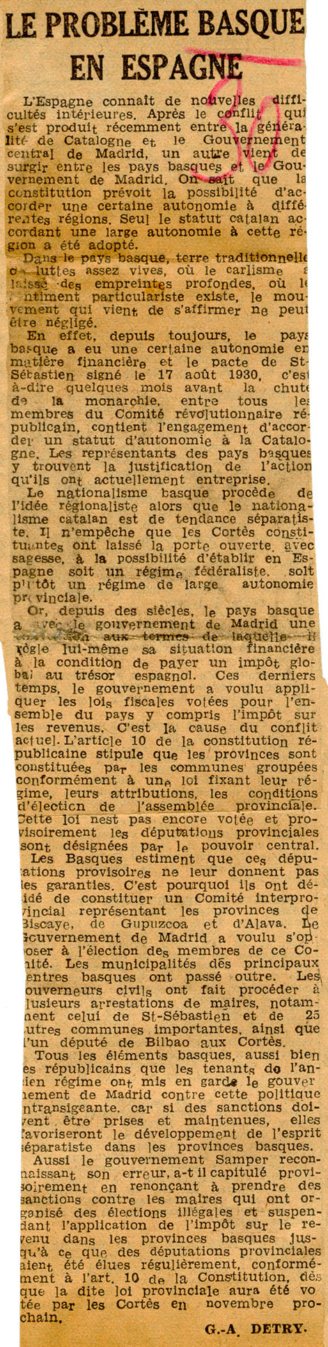 - Recorte de agencia [Argus Suisse et International de la Presse, S.A./23, rue du Rhône-Genève]