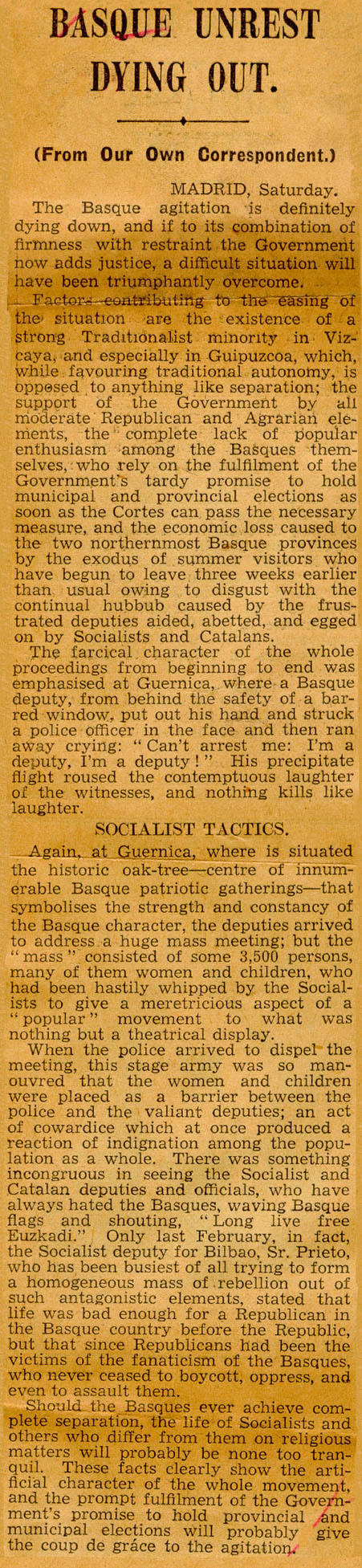 - Basque unrest dying out.