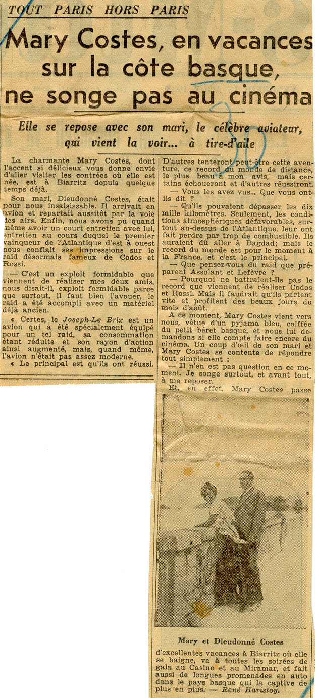 - Mary Costes, en vacances sur la côte basque, ne songe pas au cinéma.