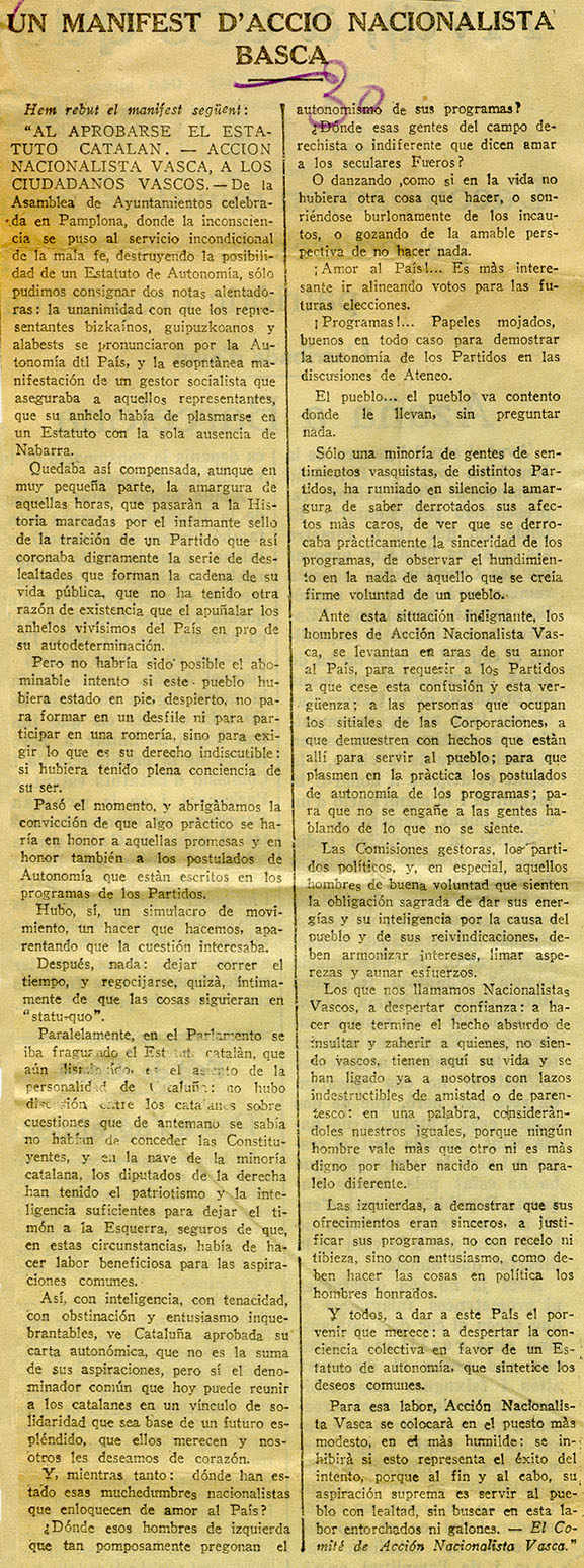 - Un manifest d´Acció Nacionalista Basca.