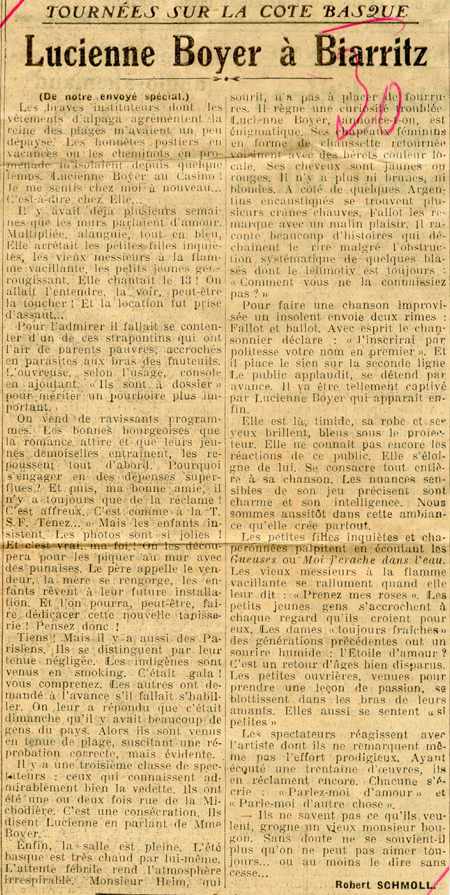 Lucienne Boyer à Biarritz.