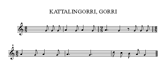 Kattalingorri, gorri, gorri.Iduzki xuri, xuri, xuri.