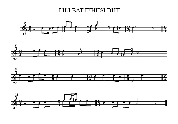 1. Lili bat ikusi dut baratze batian,Desiratzen bainuen nere saihetsian;