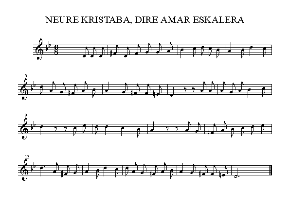 Neure kristaba, dire amar eskaleraMundutik joateko zeruko ballera.