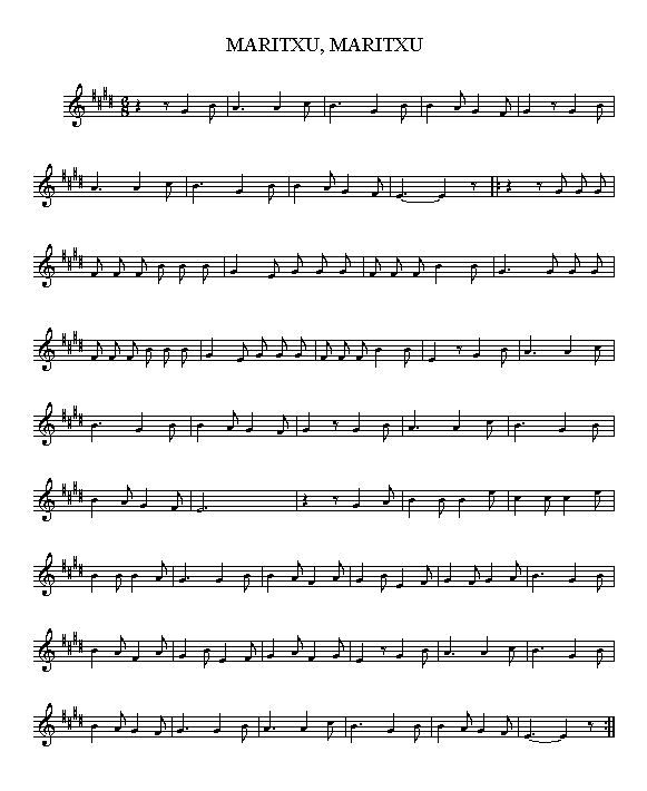 Maritxu, Maritxu, goxo zále zera zu;Maritxu, Maritxu: bizitzen badakizu.