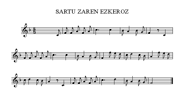 Sartu zaren ezkeroz nere biotzian,Ojala bazinauzkat beti sayetsian.