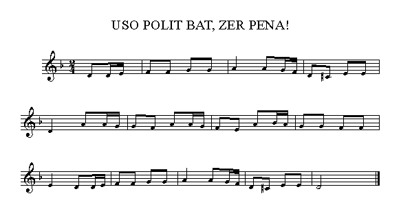 1.Uso polit bat zer pena!ezer txarrik ez zuena;