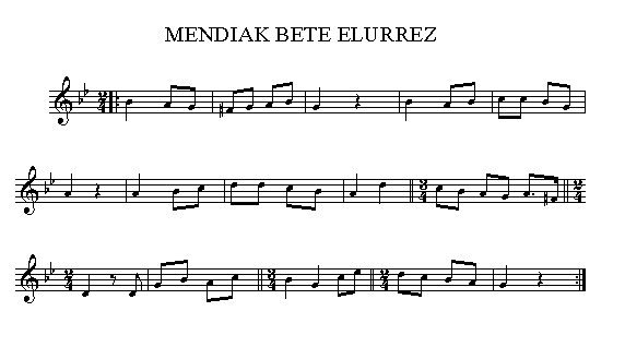 l.- Mendiak bete elurrez begitartea nigarrez,lan eginez urriki dut bainan atsegin bat ere ez.