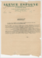 Noticia de la "Agence Espagne", comunicando la autorización del culto privado y la libertad de la práctica religiosa en España.