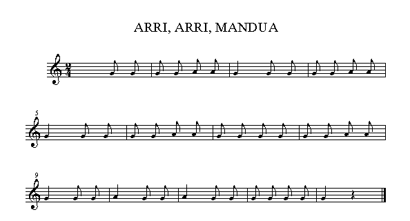 Arri, arri, mandua,Altza, Mari tontua.