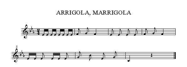 Arrigola, marrigola, kin, kuan, kin.Porta zela, porta min.