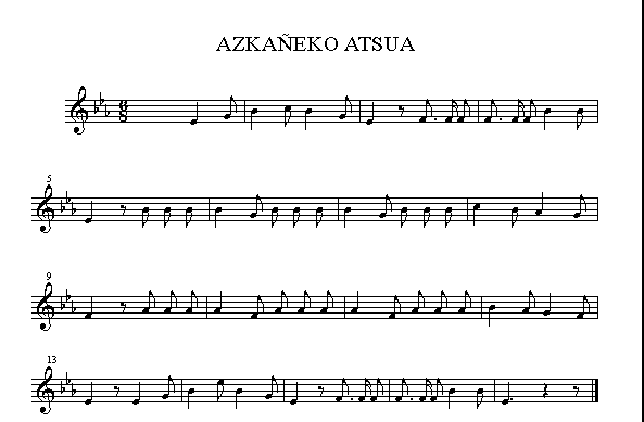1. Azkañeko atsua,Bringillin brangillun, gaixtua.