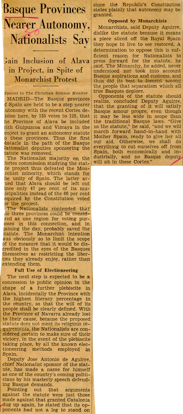 - Basque Provinces Nearer Autonomy Nationalists Say.
