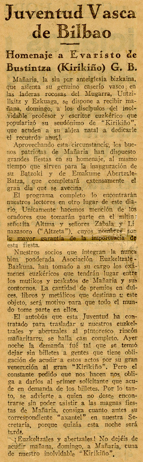 Cultura vasca en la prensa