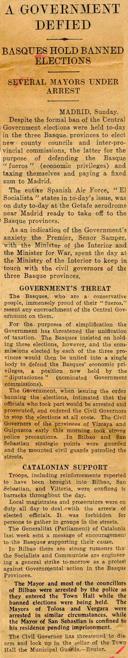 - A Government defied. Basques hold banned elections.