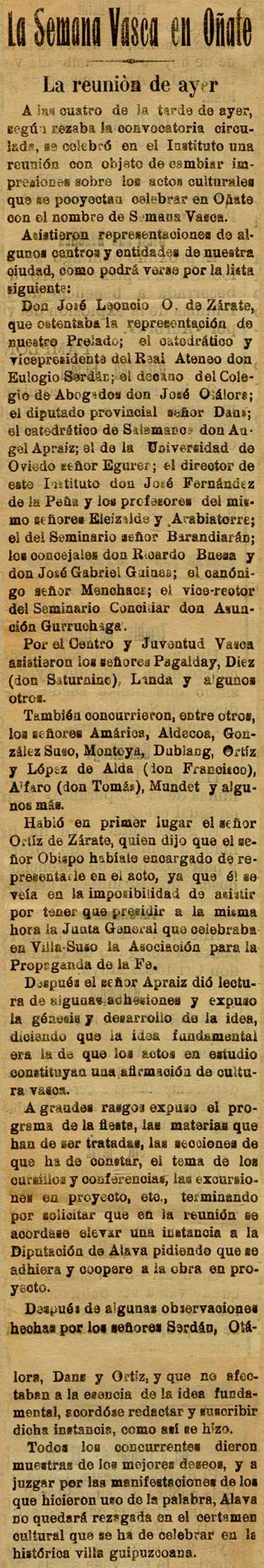 - La semana vasca en Oñate.La reunión de ayer.