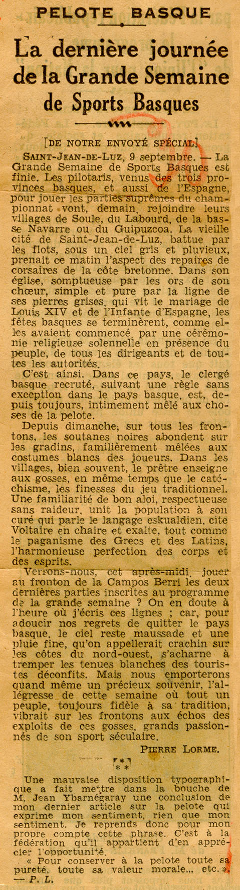 - La dernière journée de la Grande Semaine de Sports basques.
