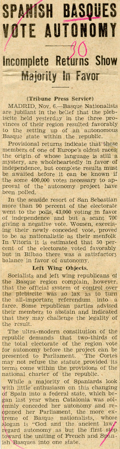 - Spanish Basques vote autonomy.