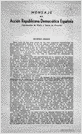 Propaganda de Acción Republicana Democrática Española explicando quiénes son y sus objetivos.