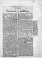 Recorte de un editorial publicado en "La Vanguardia" de Barcelona con el título "Religión y Política" en el cual se discute la conveniencia de la restauración del culto católico
