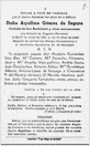 Recordatorio del fallecimiento de Aquilina Gómez Segura, esposa de Modesto Fernández.