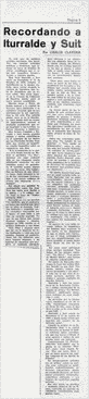 Recorte de prensa en el que se contiene un artículo de Carlos Clavería titulado "Recordando a Iturralde y Suit", en torno a la figura de este escritor navarro.
