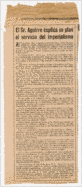 Recorte de prensa procedente de un periódico comunista no identificado, en el que se publica un editorial adverso a José Antonio de Aguirre, bajo el título "El Sr. Aguirre explica su plan al servicio del imperialismo".