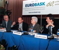 El 1 de febrero en Bilbao, José María Muñoa intervino en el acto conmemorativo del 60 aniversario de la constitución oficial del Consejo Vasco por la Federación Europea, actualmente Eurobask (1). La jornada, inaugurada por la Presidenta del Parlamento Vasco, Arantza Quiroga, se desarrolló en forma de mesa redonda que, con el título "Una Europa mejor para un mundo mejor: la utopía continua", reunió a personalidades de la política, la Universidad, la cultura y el europeísmo. El Presidente de Eusko Ikaskuntza presentó sus ideas sobre el pasado, el presente y el futuro de la Unión en una breve conferencia bajo el epígrafe "Pueblo Vasco y eurooptimismo".