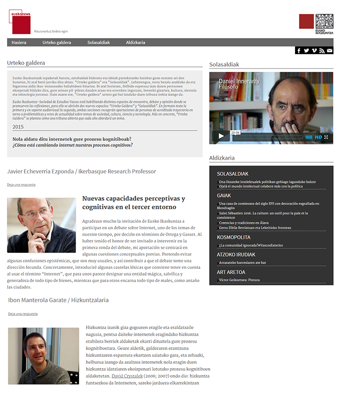 Ekimen berri horietako batek euskal kultura eta zientziaren inguruko EUSKONEWS aldizkaria du oinarritzat. Argitalpen honek ia 20 urte bete ditu eta sarean zazpi mila harpidedun baino gehiago dauzka. Apiriletik aurrera bi atal berri jarriko dira abian: "Urteko galdera" eta "Solasaldiak". Lehenengo hori testu bezala azalduko da eta bigarrena aldiz ikus-entzunezko baliabideen bitartez. Bi atal horietan ibilbide ospetsua izan duten pertsonen ekarpenak bilduko dira, gure artean pil-pilean dauden arazo eta erronken inguruan, bereziki gizartea, kultura, zientzia eta teknologia jorratuz.