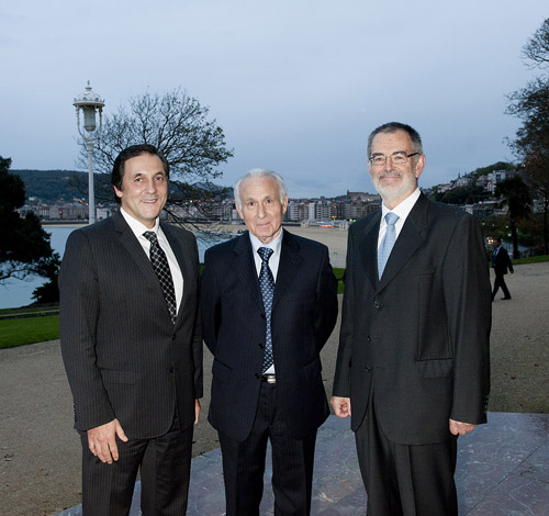 El Palacio Miramar de Donostia acogió el 8 de noviembre la ceremonia de entrega del Premio Eusko Ikaskuntza-Caja Laboral de Humanidades, Cultura, Artes y Ciencias Sociales 2012 al pensador y escritor Joxe Azurmendi Otaegi (Zegama, 1941). Junto con los presidentes de las entidades otorgantes del galardón, Iñaki Dorronsoro y Txomin García Hernández, el acto contó con la intervención de representantes de las siete universidades que participan en el jurado, quienes glosaron las distintas facetas del premiado. Así, Iosu Zabala (Universidad de Mondragón) habló de su aportación académica; Charles Videgain (Universidad de Pau) inscribió a Azurmendi en el contexto del pensamiento europeo; de su obra poética se ocupó Iñaki Esparza (UNED) y de la ensayística Jesús María Pintor (Universidad Pública de Navarra); el compromiso con la cultura centró la intervención de Gabriel Insausti (Universidad de Navarra); finalmente, Roberto San Salvador (Universidad de Deusto) e Iñaki Goirizelaia (Universidad del País Vasco) abordaron la producción intelectual de Azurmendi y su labor en favor del euskera.