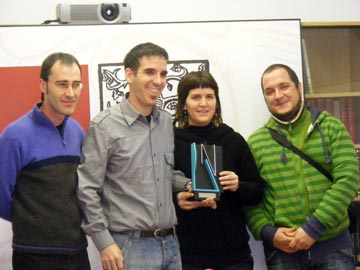 Les lauréats de cette édition, Evelyne Cazemajor, Thomas Pierre et Charles Videgain (de gauche à droite sur la photo), reçurent les prix dans les catégories de vidéo documentaire, prix de Culture basque et prix d'honneur Culture Basque respectivement.