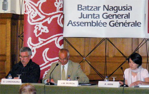 El 28 de mayo se celebró en el Palacio Miramar de Donostia la Asamblea General anual de Eusko Ikaskuntza. Conforme a lo establecido en el orden del día, el Secretario de la entidad, Gorka Landaburu, presentó la Memoria de actividades del 2009, cuyo catálogo-resumen se entregó a los asistentes. Por su parte, la subdirectora Arrate Arín, en ausencia del Tesorero, presentó el Balance y Cuenta de Resultados 2009. Ambos informes fueron aprobados, así como la distribución de resultados y la empresa auditora para los próximos ejercicios.