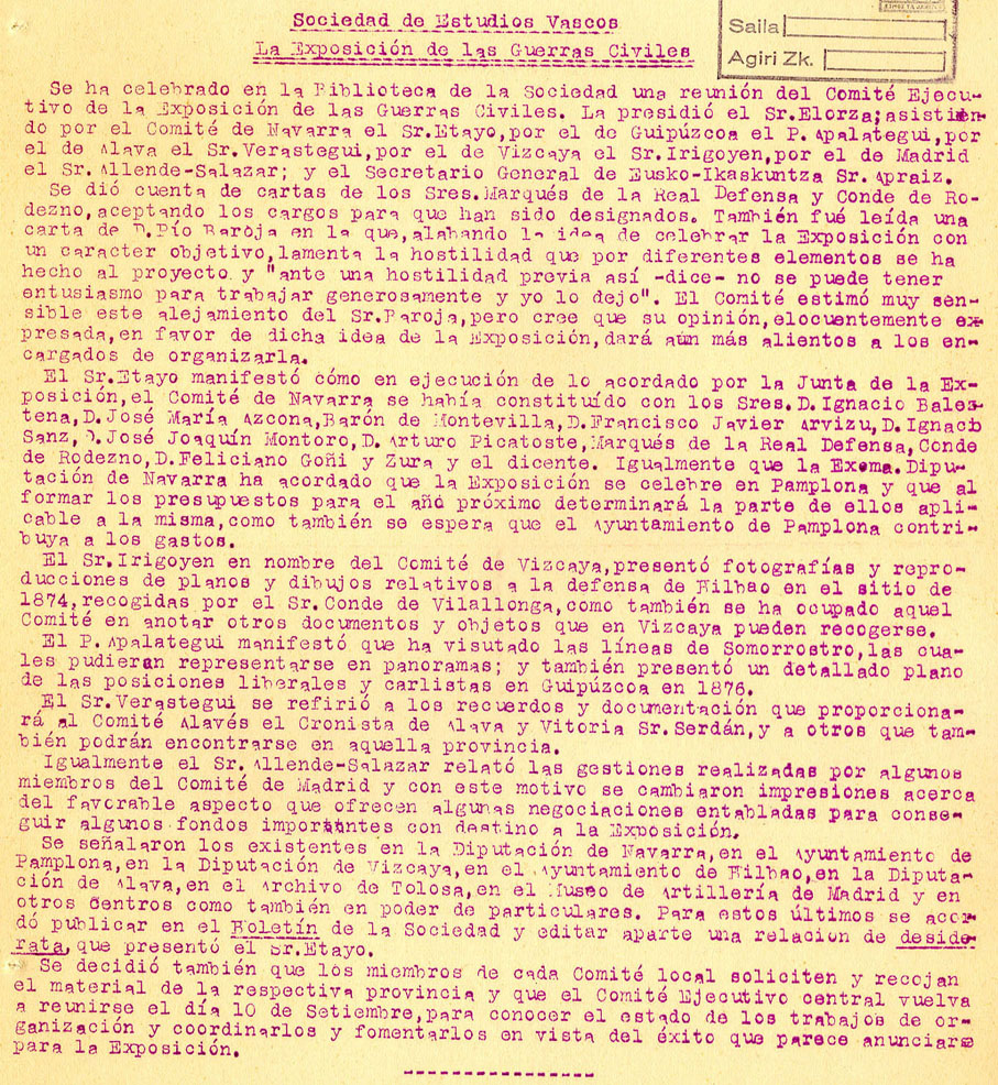 - Sociedad de Estudios Vascos. La Exposición de las Guerras Civiles.