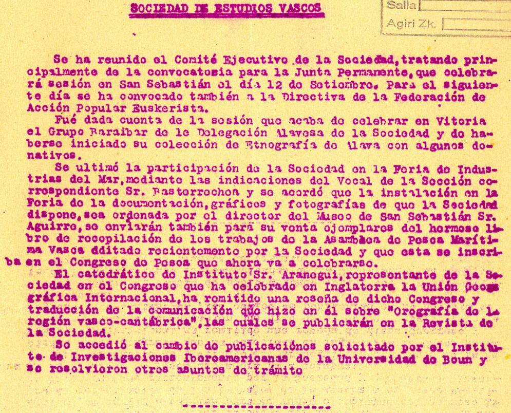 - Sesión del Comité Ejecutivo. Participación Sociedad en Feria de Industrias del Mar y en congreso Unión Geográfica Internacional.