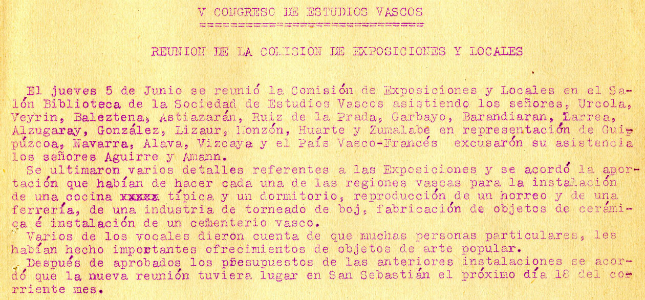 - V Congreso de Estudios Vascos. Reunión de la Comisión de Exposiciones y Locales.