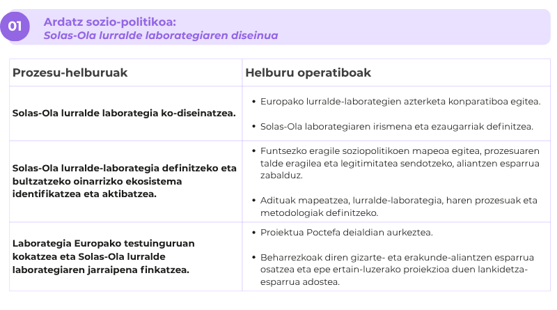2025eko ekitaldirako proposatutako estrategia, helburu eta ekintzen diseinu metodologikoa, Solas-Ola Lurralde Laborategiaren egonkortasuna bermatzeko beharrezko baldintzak sortzeko mekanismo gisa planteatzen dira. Gainera, esperimentatzeko, aplikatzeko eta kontrastatzeko espazioa eskaintzen da, gai jakin bati buruz jardunez: Landa garapena klima larrialdiaren aurrean.