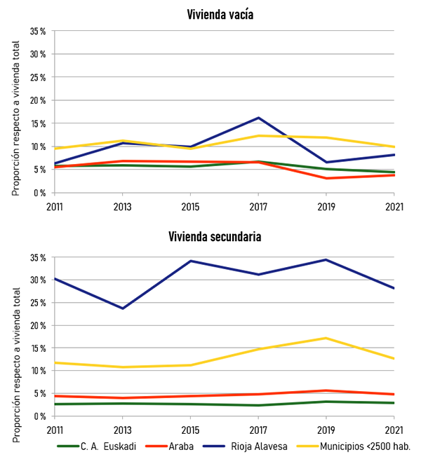 Fuente: Gobierno Vasco. Departamento de Planificación Territorial, Vivienda y Transportes (varios años). Encuesta sobre el Uso de la Vivienda y Estadística sobre vivienda vacía.
