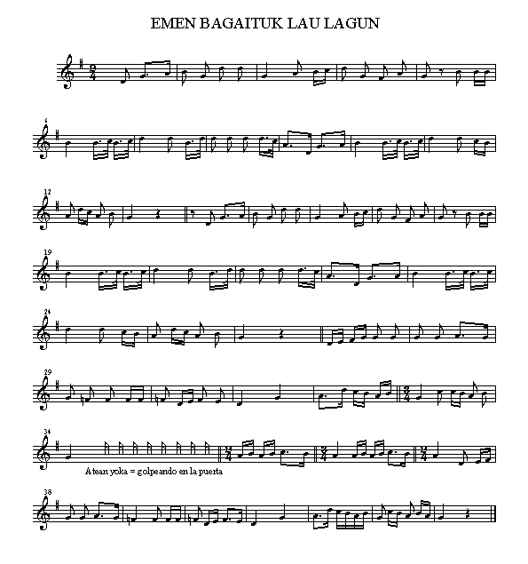 1. Emen bagaituk lau lagun:Dantza bat eman diezagun.