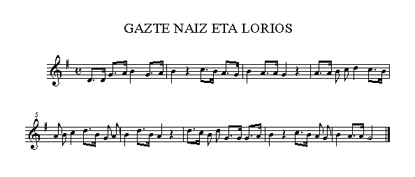 1. Gazte naiz eta lorios, izpiritua kurios,Batez agrados, bertzeaz jelos, mutil gaztekin gau oroz.